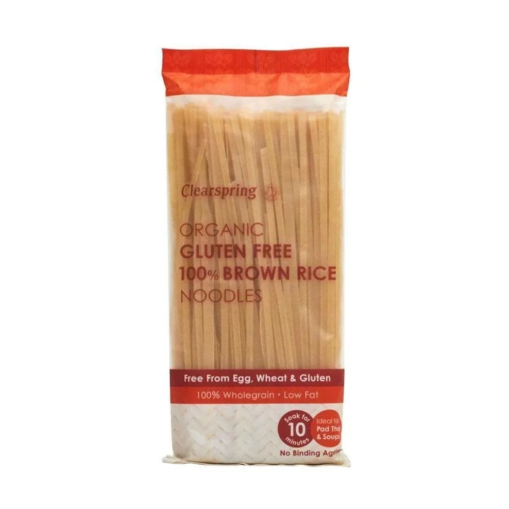 Versatile and easy to cook wholegrain rice noodles that add an authentic Oriental touch to any dish. They are made using 100% organic brown rice grown in Thailand without any binding agents. Stir fry them with vegetables and a Pad Thai sauce, make a delicious Asian noodle salad or add them to soups for a quick and satisfying meal. They can also be used as a gluten free alternative to wheat pasta.