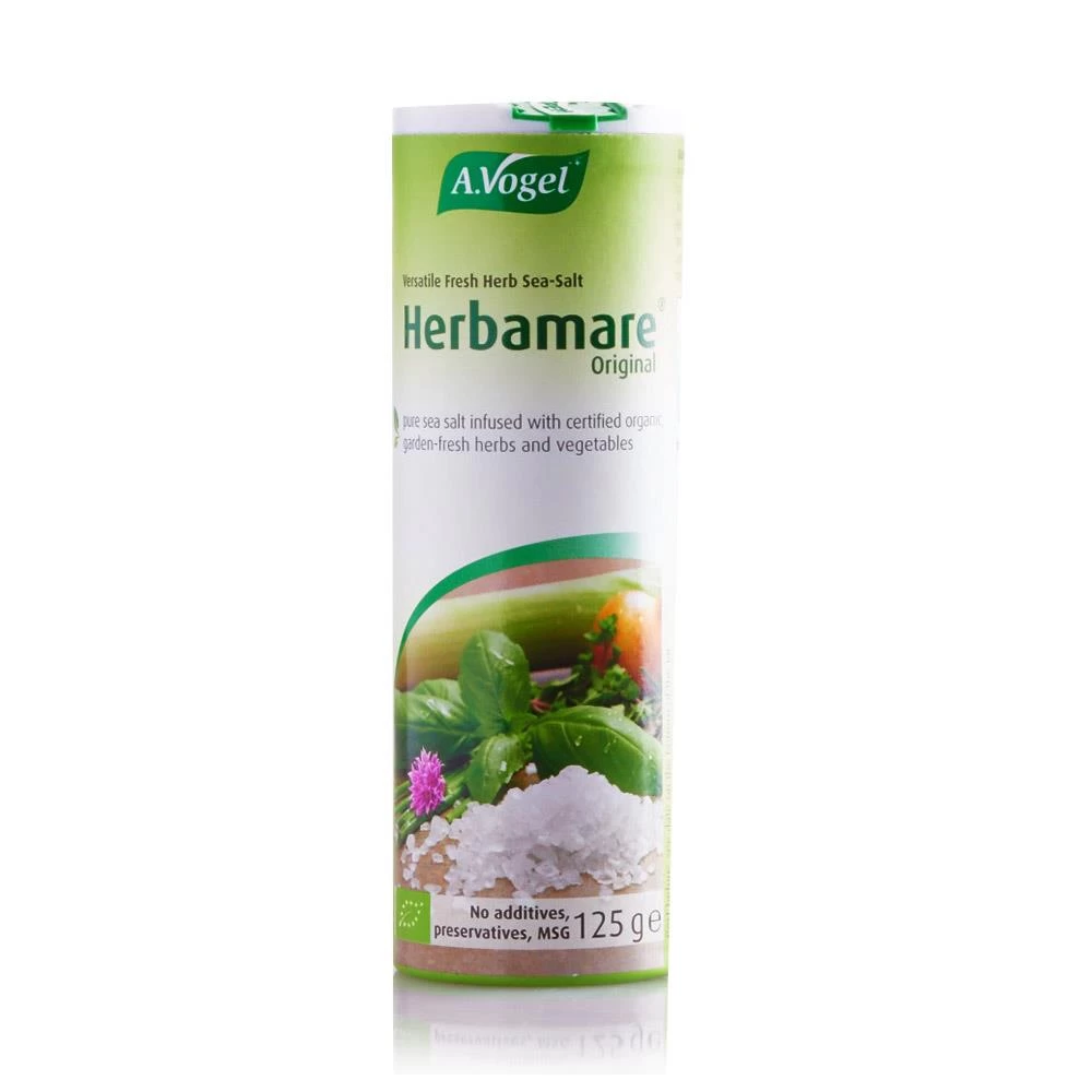 Original Herbamare is a combination of organic herbs, vegetables and sea salt, used to add flavour in cooking or as a table salt.