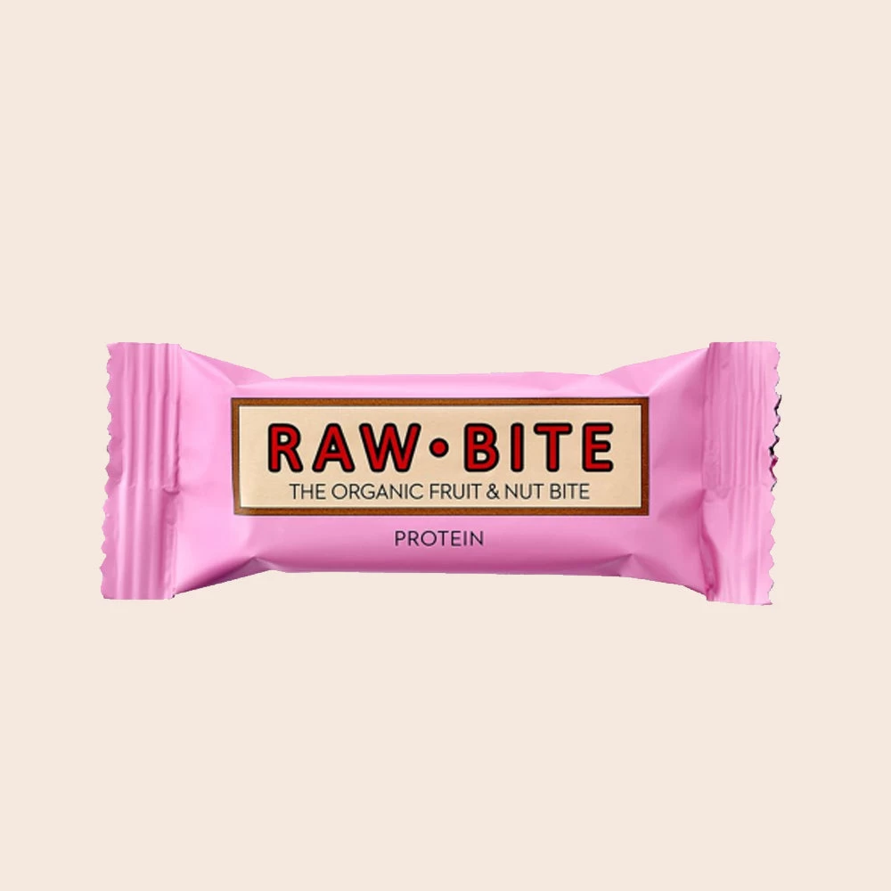 Raw Bite ProteinRaw Bite Protein. This bar is made of dates, almonds, cashews as well as pea and rice protein. It is also enhanced with pumpkin seeds and cacao for a savoury taste. Ideal for travelling, in between, for athletes or as a snack for school.